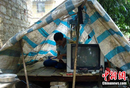 此后,吳萬(wàn)杰的父母則擠在不到五平米的小廚房里,拿門板當(dāng)床入睡。而吳萬(wàn)威便一直“蝸居”在為躲避洪水而建的樹上“小棚”上。不久,吳萬(wàn)杰高考完回家,因無(wú)處居住,吳萬(wàn)威便在撿來(lái)些木棍、木板又幫吳萬(wàn)杰在樹上搭了個(gè)棚,并在棚內(nèi)拉上了電燈。兩兄弟就這樣在樹上住了近半個(gè)月。有樹下過(guò)路人嘲笑他們住“鳥巢”,也有好心人提醒他們:電燈線路沿著樹感極易導(dǎo)電,打雷下雨天住在很危險(xiǎn)。于是,兩人又將樹上的“小棚”搬到地上。然而地面泥土潮濕,“小棚”空間過(guò)于狹小加上蚊蟲叮咬厲害,弟弟便讓哥哥萬(wàn)杰進(jìn)廚房與父母同住。而弟弟自己一個(gè)人至今依舊“蝸居”在外面的小棚里。在此期間,吳萬(wàn)杰接到了來(lái)自長(zhǎng)江大學(xué)的金融學(xué)專業(yè)錄取通知書。