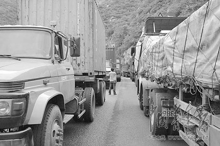 9月1日下午,在京藏高速公路冀蒙界路段等待通車(chē)的間歇,一位駕駛內(nèi)蒙古集寧牌照汽車(chē)的司機(jī)告訴記者,他拉煤的路線(xiàn)是從內(nèi)蒙古的托縣到北京的昌平,如果不堵車(chē),一般兩天可以走完一個(gè)來(lái)回,“現(xiàn)在已經(jīng)是第4天了,還沒(méi)回到集寧”。