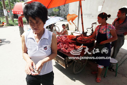 “我當(dāng)時被嚇壞了,不過他后來說不會傷害我,我才松了口氣!北粧冻值膵D女是小區(qū)居民,叫李菊香。因剛添了孫子,李菊香昨日早早起床買菜,準(zhǔn)備招待親戚。李菊香剛到豬肉攤旁買肉,胡某突然從身后將她扣住,用刀架在她的脖子上。李菊香嚇壞了,問胡某什么事。胡某說,他被人騙來搞傳銷,處境很危險。他挾持她,只是希望引來民警,幫他逃離傳銷。李菊香覺得他不像說謊,放松了一些,周圍居民果然有人報了警。