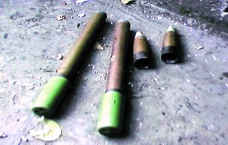 正在這時,劇組那名工作人員發(fā)現(xiàn)了異樣。在一個堆著啤酒瓶、廢紙的地方,有4根鐵的條狀物很是怪異:長的2根有1尺多長,一頭是綠色的,一頭是棕色的;另外2根很短,是圓錐體,尖上是白色的,身體是棕色的,尾部又是黑色的。“啊呀,這里有火箭彈!”這員工一聲喊,把周圍的人嚇了一大跳。