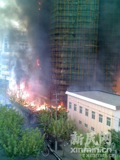 15時(shí)40分,因?yàn)閾?dān)心過火的腳手架和大樓發(fā)生意外,警方再次將警戒線擴(kuò)大。目前,大火還沒有熄滅。目前由于膠州路余姚路的火災(zāi),采取的交通管制是:從安源路到西康路然后到康定路再到延平路最后再到安源路。