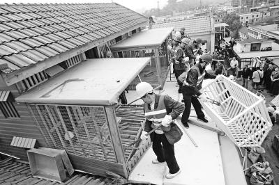 樓頂搭建超豪華鴿子“別墅”,飼養(yǎng)價(jià)值不菲的賽鴿,引來(lái)居民投訴。昨日,武昌區(qū)黃鶴樓街城管部門,在下達(dá)多次“拆違通知書”無(wú)果后,對(duì)這一違法建筑進(jìn)行強(qiáng)拆。據(jù)稱,鴿主僅建這一超豪華“鴿舍”,就花費(fèi)50萬(wàn)元。