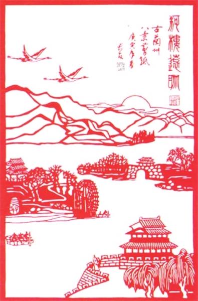 葉長友剪紙:古八景之河樓遠(yuǎn)眺蘭州