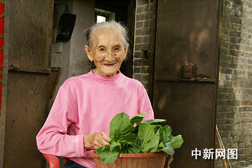 今年已99歲的楊容開老太婆在平沙島上生活了幾十年,現(xiàn)在還能下地種菜。今天上午,記者來到島上采訪時看到一個典型的嶺南水鄉(xiāng)小院內種滿了綠油油、水靈靈的青菜瓜果。正好看到楊婆婆拿著一把水靈靈的青菜準備送到孫子家里。楊婆婆說,自己種出來的菜蔬吃不完,送給孫子償鮮。