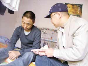 昨天,記者見到了“青島遼寧老鄉(xiāng)互助會(huì)”的兩名負(fù)責(zé)人,莊紹武和胡越,他們正準(zhǔn)備把剛籌集到的2000元錢送到八醫(yī),用做張志國做透析的費(fèi)用!拔覀儙椭鷱堉緡莻(gè)很偶然的機(jī)會(huì)!鼻f紹武告訴記者,今年4月份,一幫在青島工作多年的遼寧老鄉(xiāng)在QQ群(群號(hào):23490201)上注冊了一個(gè)“青島遼寧老鄉(xiāng)互助會(huì)”的組織,很快就發(fā)展到了130多人,老鄉(xiāng)們還聚會(huì)了幾次,相約互相幫助。