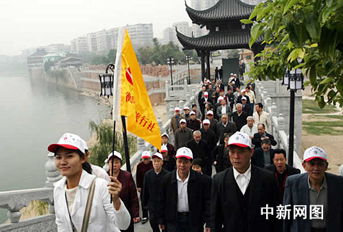 中新網(wǎng)長(zhǎng)沙10月19日電(王永華)今天是農(nóng)歷的九月初九,中華民族傳統(tǒng)的重陽(yáng)佳節(jié)。為歡度重陽(yáng)節(jié),湖南衡陽(yáng)市今天主辦了千名老人游雁城活動(dòng)。上午,千名老人頭戴統(tǒng)一的遮陽(yáng)帽,分乘30輛大巴分別向陸家新屋、湘聯(lián)學(xué)聯(lián)、湖湘文化館、石鼓書(shū)院等6個(gè)景點(diǎn)參觀。