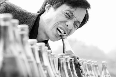 “開(kāi)始!”宋老板發(fā)出命令后,胡耀輝左手抓起啤酒瓶,輕輕一咬,瓶蓋已經(jīng)含在嘴里。白白凈凈的胡耀輝沒(méi)有一點(diǎn)面部表情,輕松得就像喝涼水一樣。