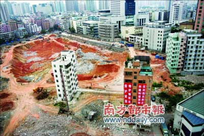 昨日,記者在施工現(xiàn)場(chǎng)看到,蔡珠祥夫婦的樓房基本已拆除完畢。剩下兩棟孤樓四周均已開(kāi)始施工開(kāi)挖地基。楊先生說(shuō),他與開(kāi)發(fā)商基本達(dá)成一致意見(jiàn),雙方有望最終通過(guò)協(xié)商解決此事。蔡屋圍最后的釘子戶(hù)可能會(huì)是張女士家。