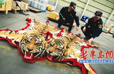 得到線索后,海關(guān)緝私部門(mén)立即趕赴煙臺(tái),到黃某的暫住地進(jìn)行搜查,執(zhí)法人員共搜出虎皮一張,虎鞭、虎膽、虎牙制品各一件,虎骨若干。加上執(zhí)法人員9月21日查扣的那張虎皮,涉案總額達(dá)100萬(wàn)元。同時(shí),執(zhí)法人員將另一名涉案的中國(guó)籍犯罪嫌疑人抓獲。