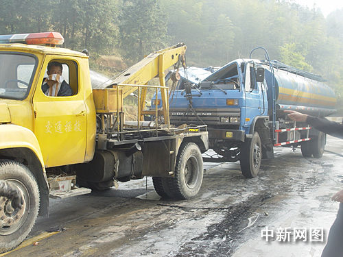中新網(wǎng)韶關(guān)11月17日電(馮昶 廖志鋒)11月17日,一輛載滿危險化學(xué)物品甲醛的槽罐車,在廣東省道S347線新豐縣境內(nèi)長江道班附近側(cè)翻,并流出大量有毒液體甲醛。新豐縣公安局民警和消防官兵僅用兩個多小時將側(cè)翻的槽罐車吊起,救出兩名傷者,消除了安全隱患。
