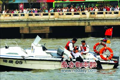疑犯開著快艇一路狂逃,半路將人質(zhì)踹入水中;警方救人、擒賊、打撈物證,十幾分鐘內(nèi)全部完成。昨天,走過百余年歷史、默默守護(hù)珠江的廣州水警由幕后走向前臺!鞍倌晁,再創(chuàng)輝煌”2007年廣州警察開放日活動(dòng)在濱江西路水警碼頭和人民橋至解放大橋之間的珠江河面舉行。廣州水警向萬名圍觀市民演示了水上反劫持抓捕行動(dòng)。這是第六屆廣州“警察開放日”活動(dòng)的重頭戲。此外,水上表演還包含消防船表演、飛行表演等多個(gè)項(xiàng)目。