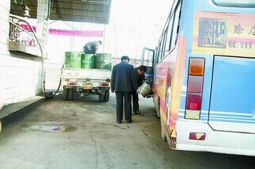 河南省燃料總公司新鄭石油銷售處和裕達油庫均稱“一個多月都沒油了”。而記者調(diào)查發(fā)現(xiàn),就在昨天下午,一輛車從新鄭石油銷售處油庫拉出了11罐柴油,這些柴油被拉到一潤滑油門市出售。售價為公交車每升8.1元、其他車輛每升8.2元,比國家規(guī)定的5.16元/升的零售價高了3元左右。