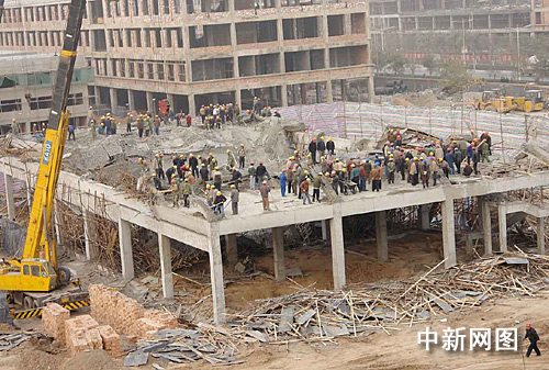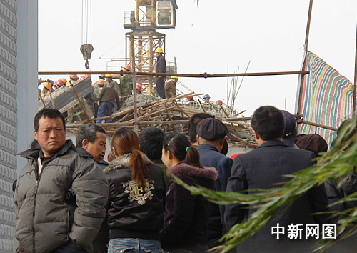 從周邊的居民處了解到,該車站由浙江的一家工程公司負(fù)責(zé)承建,建成后將把現(xiàn)在的侯馬西站搬遷過來,以成為侯馬北方輕工城的配套設(shè)施。昨天下午三時(shí)政府才在這里剪彩搞了典禮活動(dòng),活動(dòng)結(jié)束后施工方就開始給二樓樓頂灌漿,到今天凌晨一時(shí)左右,工人正在作業(yè),就出事了。