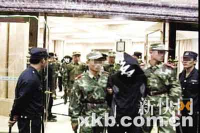 “酒席是7時30分準時開始的,當時林、許兩個都在該樓層最豪華的‘空軍一號’包房里,當荷槍實彈的武警沖到許、林面前時,他們剛剛舉杯喝完第一杯酒!”據(jù)阿薛稱,還沒有等這些黑幫成員反應(yīng)過來,幾十名武警和民警已把所有人按倒在酒桌旁,一旁的所有黑衣保鏢也同時束手就擒。