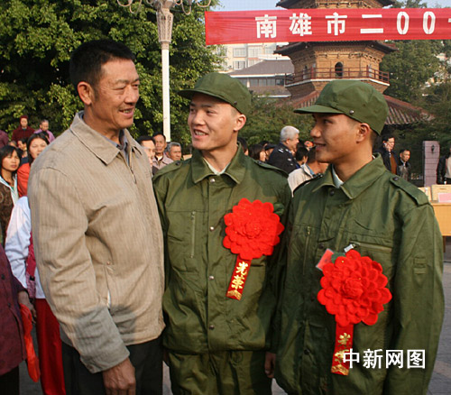 中新網(wǎng)韶關(guān)12月4日電(馮昶 李凌 朱祖純 李子亮)12月4日,粵北革命老區(qū)南雄市三影塔廣場人群涌動,紅花簇簇,一派喜氣洋洋的熱鬧場面,當?shù)卣谶@里舉行隆重的進藏新兵交接儀式。家住南雄市鄧坊鎮(zhèn)洋西村的一對畬族同胞兄弟藍旭東、藍善斌雙雙踏上了進藏當兵的旅程。