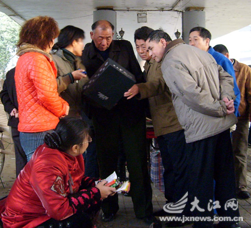 “打火機兩元一只,還可以看美女脫衣!8日上午,幾名中年婦女在省城八一大橋橋底不停地吆喝。記者看到,多名婦女手里拿著打火機對著一張白紙,手指一摁開關(guān),白紙上就出現(xiàn)一個美女的畫面,如此“神奇”的玩意一下子吸引了不少人觀看,許多人還紛紛掏腰包購買。(記者 張俊 歐陽興文/圖)