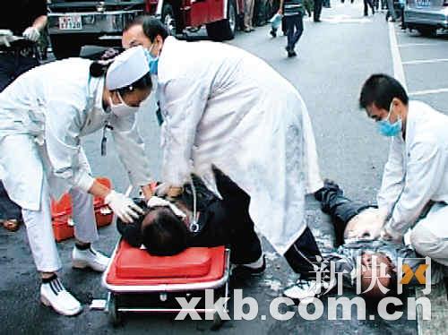 昨晚11時(shí),記者在醫(yī)院看到一名男傷者在搶救室搶救。據(jù)介紹,該傷者事發(fā)時(shí)正在咖啡廳2樓,由于咖啡廳濃煙滾滾,傷者吸入過(guò)多濃煙,他掙扎著打破咖啡廳中間的大玻璃窗后從樓上跳下,當(dāng)場(chǎng)昏迷。當(dāng)晚11時(shí)10分,該傷者被送到重癥監(jiān)護(hù)室。據(jù)知情人介紹,當(dāng)時(shí)還有一名女士也從窗戶跳下。