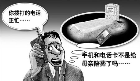 但就在幾天前,陳某一不小心撥打了存在自己手機(jī)里的母親的手機(jī)號(hào)碼,卻聽(tīng)到了占線的忙音,陳某懷疑自己撥錯(cuò)了,就又撥了一遍,結(jié)果還是忙音。手機(jī)明明下葬了呀,想到這,他不禁出了一身冷汗。晚上,他翻來(lái)覆去難以入睡,越想越覺(jué)蹊蹺,就把這事告訴了妻子。二人一商量決定第二天到移動(dòng)公司問(wèn)個(gè)明白。沒(méi)想到一問(wèn)不要緊,更奇怪的事出現(xiàn)了,電腦上竟然顯示出了該手機(jī)在母親去世后一個(gè)月的通話費(fèi)用,夫妻倆面面相覷,心里直發(fā)毛,思來(lái)想去,他們決定報(bào)案,讓警方查個(gè)明白。