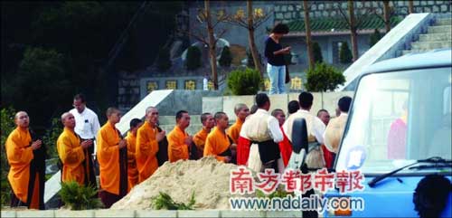 從昨天下午2時30分起,近50位僧人道士就一直在墓地現(xiàn)場念經(jīng)。