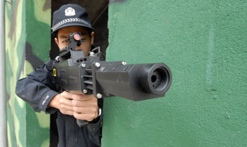 這段驚心動(dòng)魄的畫面,是昨日記者在泉州市公安局巡邏特警支隊(duì)特警大隊(duì),看到特警使用一種新型的警用裝備——激光眩目槍制服“武瘋子”的模擬現(xiàn)場。