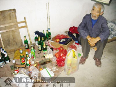 該男子就住在小賣部旁邊的一矮小瓦房內(nèi)。記者在門前看見,屋內(nèi)的燈光非;璋,屋內(nèi)一角擺滿了啤酒瓶和白酒瓶等,其中一名白發(fā)老者正坐在一張床上,數(shù)著散落在地上的一堆零錢。不久,燒傷男子來到小賣部,買了3瓶啤酒。記者詢問3人來自何處,但3人都沒有回答。