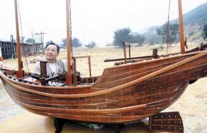 昨日下午,眾多游人將一艘在沙灘上售賣的紅色仿古木質(zhì)船模團(tuán)團(tuán)圍住,爭睹其風(fēng)采。一個(gè)戴著眼鏡的老人坐在一旁,瞇著眼睛竊笑。他是船模的主人,陽江一名柳姓師傅。柳師傅說,他以前曾在廣州黃埔文沖造船廠當(dāng)造船工,目前專門在家制造船模售賣,是一名手工藝人。