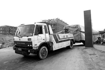 昨天早上約9時30分,多家媒體記者趕到現(xiàn)場,當(dāng)記者表明身份想進入停車場采訪,兩名自稱為該停車場的工作人員將記者攔在門外,說是領(lǐng)導(dǎo)指示不能讓人進入,讓記者離開。記者后看到有一輛交通清障車拖著一塑料布包裹嚴(yán)實的物體離開,記者準(zhǔn)備拍照,其中一男子試圖用手阻擋。