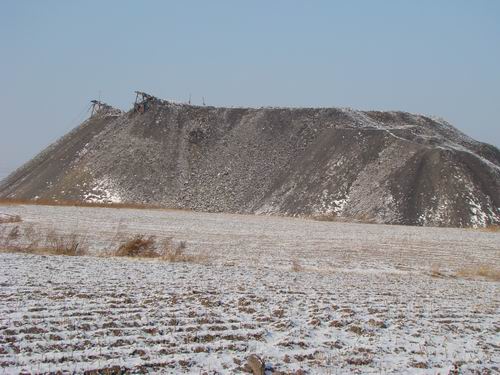 站在山坡的高處,可以看到七煤集團向陽煤礦的很多礦井,這些礦井,都有一個相同的特點,就是都有數(shù)目不等的廢礦石(煤矸石)山,它們占用的就是村民賴以生存的承包田。