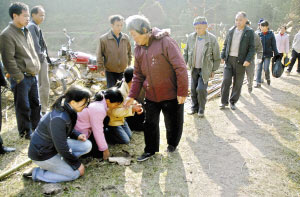 被農(nóng)婦何結(jié)釗砍死的5人的葬禮在2007年的最后一天舉行,而疑兇的家人則以下跪的方式面對死者家屬。記者采訪發(fā)現(xiàn),這場悲劇帶來的傷害,不管是對受害人家屬,還是對疑兇家人,都將會是一場無盡的痛,5條人命、3個家庭,一種難以用言語表達的傷害,究竟是誰的錯……