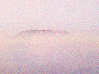 登上蘭山頂后,志愿者共同敲響了新年鐘聲,并在蘭山鐘院等待日出。由于時處清晨,蘭州城區(qū)被一層薄霧籠罩著,唯有潺潺的黃河在霧氣中忽隱忽現(xiàn)。恰在此時,志愿者李建強突然發(fā)現(xiàn)蘭州市區(qū)的上空多了個小島。大家定睛一看,果然有一個小島漂浮在市區(qū)上空。隨行的志愿者趕快拍下了這一幕。在照片的中央,一個小島橫埂在上面,山尖上的日出慢慢透出了光亮。10余分鐘后,“小島”上的日出消失,蘭州市區(qū)又被霧氣籠罩,海市蜃樓慢慢消失。半個小時后,太陽才從遠處的山坳里露出了“臉”,將新年的第一屢陽光撒向蘭州市區(qū)。