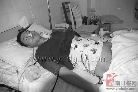 據(jù)主治醫(yī)生張新有介紹,病人剛送醫(yī)院時(shí),駱文龍已經(jīng)有了休克癥狀。手術(shù)過程中,臨滄市第一人民醫(yī)院也派出專家組往鎮(zhèn)康趕,由于病人失血過多,一度出現(xiàn)血漿短缺,等到市里專家組到了以后,馬上對病人補(bǔ)充了血漿,手術(shù)直到第二天上午才做完。張醫(yī)生說,手術(shù)后發(fā)現(xiàn),子彈從駱文龍右肋下穿入,從右腰側(cè)出來,他的肝右翼、膽囊底、胃竇部前后壁、十二指腸水平部都出現(xiàn)破裂。手術(shù)以后主要是防止他的十二指腸修補(bǔ)處發(fā)炎漏液癥狀。(劉自學(xué) 攝影報(bào)道)