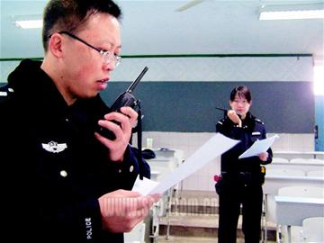 9時至11時,隊員2人一組,左手拿著數(shù)張全英文警情稿,右手拿對講機,用英文進行“實戰(zhàn)”通話。二名英語女教官不停地來回穿梭教室內(nèi)外,時不時對隊員們發(fā)音不準之處進行糾正和輔導(dǎo)。由于隊員們之間的通話和交流,均是英語,記者如聽“天書”,整個上午只聽懂他們每次說的最后一個單詞——over。
