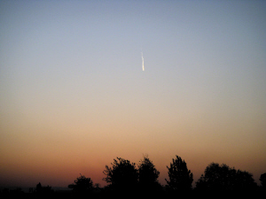 網(wǎng)友“20231”在帖子中回憶:他家住在離機(jī)場(chǎng)不遠(yuǎn)的地方,昨天早上7點(diǎn)40分,他打開窗簾,朝正東方向機(jī)場(chǎng)上空看去,突然看到空中有一個(gè)發(fā)亮的不明物體。由于距離遠(yuǎn),看不出不明物體是否在移動(dòng)。它一直停留在空中,顏色逐漸變淡。用相機(jī)拍下來后大約過了5分鐘,物體消失了。從照片上看,它拖著一根長尾巴,被朝陽照得發(fā)亮,但看不清頭部是什么模樣。