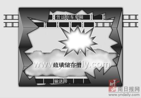 凌晨6時(shí)30分,記者趕到爆炸現(xiàn)場(chǎng),雖然火勢(shì)已被基本撲滅,但距現(xiàn)場(chǎng)100米外,刺鼻的硝煙味依然明顯,警戒線內(nèi)消防特勤官兵繼續(xù)用水槍為設(shè)備降溫,水槍大面積覆蓋裸露的硫磺顆粒堆積池,只有戴呼吸器的消防員才能進(jìn)入現(xiàn)場(chǎng)。記者看到,硫磺倉(cāng)庫(kù)是兩個(gè)長(zhǎng)100米、寬20米左右的聯(lián)排庫(kù)房,一個(gè)主要堆積高濃度硫磺顆粒,有傳送帶等設(shè)備;一個(gè)主要用作裝卸區(qū),并排停放了兩列共10節(jié)列車(chē)貨廂,滿載袋裝硫磺,在列車(chē)貨廂內(nèi)的硫磺包裝袋上,寫(xiě)有濃度99.9%的字樣。