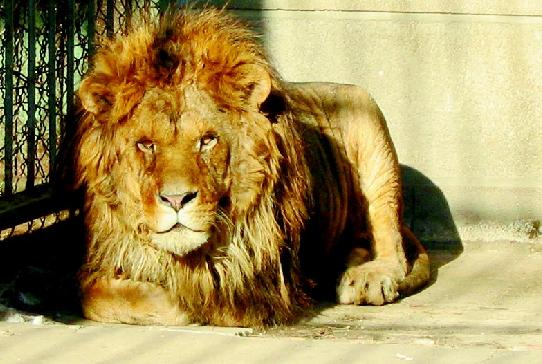 可憐的辛巴昨日黯然靜臥,呆呆地看著籠外。也許,它在想剛剛死掉不久的“怨偶”雌獅嬌嬌。也許,它在傷感:活著的時(shí)候天天吵架,現(xiàn)在想找它吵它卻不在了。
