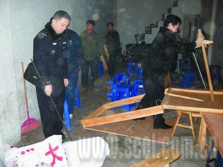 從去年5月起,派出所就經(jīng)常接到群眾舉報(bào),但每次去查賭,都逮不到人。“這些人鬼得很,反偵探能力非常強(qiáng)!本讲粌H逮不到組織賭博的人,就連提供賭場(chǎng)的門面老板都找不到,“這個(gè)門面都不知道轉(zhuǎn)了多少次手了,而且也沒(méi)有人愿意說(shuō)實(shí)話。”先后跑了幾天都沒(méi)有找到人,警方于是開(kāi)始采取搜繳賭具的方法,每出一次警,就叫來(lái)三輪車把桌椅板凳全部拉到派出所的一個(gè)倉(cāng)庫(kù)里。不到10天,倉(cāng)庫(kù)都堆滿了。正是因?yàn)閭}(cāng)庫(kù)都裝滿了,現(xiàn)在才采取砸爛賭具的辦法。