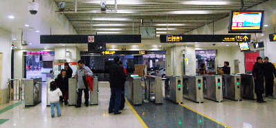昨天下午,早報(bào)記者走訪3號(hào)線友誼路站,發(fā)現(xiàn)這段視頻的大部分畫面,應(yīng)該是該站出口閘機(jī)處右側(cè)的攝像頭所拍攝。那里正對著閘機(jī),視頻中出現(xiàn)的售票廳和淡黃色大門也在它的正前方。而視頻中切換過的一段畫面,應(yīng)該是出站口正中的攝像頭拍攝的,從其正對的角度看去,站外馬路上的鐵欄桿也與視頻中的完全相同。