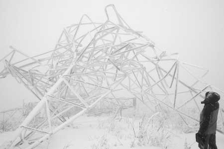 因大別山地區(qū)雪災(zāi)嚴(yán)重,三峽電力外送華東的大動(dòng)脈——500千伏宜(湖北宜昌)華(上海華新)直流輸電線路受此影響,其中安徽金寨張沖段1146號(hào)~1153號(hào)線塔覆冰嚴(yán)重,導(dǎo)致4座500千伏線塔18日倒塌,這條電力外送通道送電因此中斷。我省送變電公司385名搶修人員已趕到現(xiàn)場(chǎng)進(jìn)行搶修。