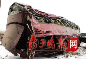 事發(fā)后,第一個(gè)從車(chē)內(nèi)爬出來(lái)的徐風(fēng)云,事發(fā)時(shí)就坐在駕駛員的后面。據(jù)其介紹,事發(fā)時(shí),路面已經(jīng)結(jié)冰,外面一片漆黑,大巴車(chē)下坡時(shí),猛然看見(jiàn)路中央有一輛翻倒的大貨車(chē),司機(jī)趕忙打方向盤(pán)右轉(zhuǎn),可能車(chē)速有點(diǎn)快,等其繞過(guò)后再想把方向打回來(lái)時(shí),已經(jīng)來(lái)不及了,車(chē)子一頭傾翻路右邊的砂廠里。