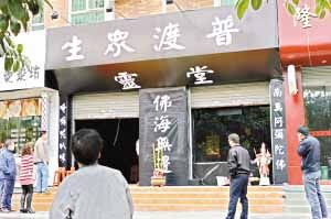 一家小餐館一夜之間變成了陰森森的“靈堂”。這是發(fā)生在白云區(qū)金信路隆康花園的一件怪事。有住戶向本報報料稱,1月19日上午,隆康花園的不少住戶驚奇地發(fā)現(xiàn)臨街的一間快餐店竟然被裝扮成了一間靈堂,里面香火繚繞,日夜傳出念念有詞的佛經(jīng)聲,一連三天都是如此。