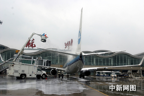 11點(diǎn)鐘,杭州蕭山機(jī)場(chǎng)的機(jī)坪和跑道上的積雪消除完畢.11點(diǎn)52分,飛往開往新加坡的MF865航班沖向云霄,成為蕭山機(jī)場(chǎng)第一個(gè)起飛的航班。