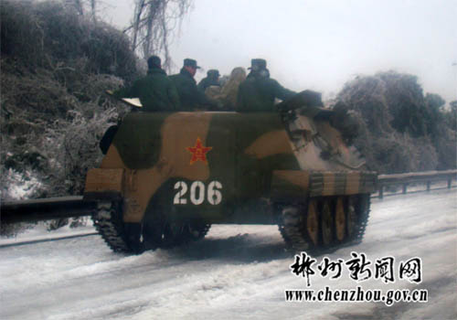1月28日,剛剛從長(zhǎng)沙開(kāi)完兩會(huì)返郴的市委副書記、市長(zhǎng)戴道晉馬不停蹄地趕到京珠高速,看望受困人員,并現(xiàn)場(chǎng)指揮交通疏導(dǎo)和救援行動(dòng)。在京珠高速良田服務(wù)區(qū),戴道晉召開(kāi)現(xiàn)場(chǎng)辦公會(huì),他要求負(fù)責(zé)交通疏導(dǎo)的人員一定要堅(jiān)守職責(zé),要在最短的時(shí)間內(nèi)確保被困在高速路上的人員及時(shí)疏散。同時(shí),湖南省郴州軍分區(qū)動(dòng)用裝甲車碾冰。