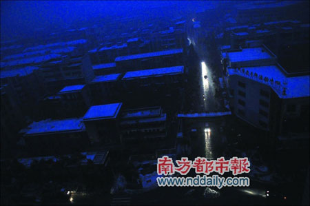 昨晚,記者在郴州市政府應急指揮中心寫稿,電力也兩度中斷。截至今日零時記者發(fā)稿時止,市政府大樓的供電仍未恢復。