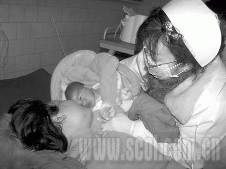 婦產(chǎn)科內(nèi),走廊上擺滿了蜂窩煤灶,上面烘烤的全是嬰兒的尿布。待產(chǎn)室門外,一個花甲老婦和一名中年男子,正焦慮不安地徘徊,不時通過門縫往里看。原來,花甲老婦名叫朱惠富,是產(chǎn)婦張大先的母親。中年男子胡成,是張的丈夫!靶液冕t(yī)院有臺大功率的發(fā)電機(jī)喲,要不然我媳婦和娃娃可慘了!焙烧f,“我媳婦進(jìn)去都1個小時了,還沒消息,急死人了!薄澳阆胍獋兒子還是女兒?”“兒女都一樣,只求母子平安。我把名字都給他們?nèi)『昧耍绻氖莾鹤樱徒泻。女兒,就叫胡蝶。?/p>
