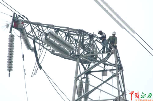 在電力“援兵”的強力增援下,萍鄉(xiāng)電網(wǎng)抗冰搶險的隊伍進一步壯大,搶修進度大大提升。經(jīng)過供電員工的奮力搶修,截至1月31日,110千伏跑高線成功打通送電,恢復21條35千伏及以上線路供電,變電站9座,供電臺區(qū)579個;目前,200余名增援隊伍正分別在220千伏跑袁(萍鄉(xiāng)跑馬坪至宜春袁州)Ⅱ線和萍五(萍鄉(xiāng)電廠至五陂下)線上進行搶修,力求在最短的時間內(nèi)恢復對這兩條與江西主網(wǎng)相聯(lián)的重要線路送電。
