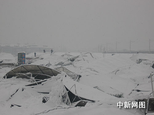 中新網杭州2月2日電(記者張麗霞 通訊員江杭燕)截至下午兩點,杭城積雪深度已達31厘米,受連續(xù)大暴雪影響,位于杭州下城區(qū)石橋路的杭州綠港花卉世界有限公司花卉產銷基地13000平方溫室鋼棚損毀,花農損失慘重,預計造成直接經濟損失2000萬左右。