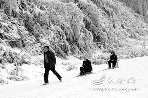 江西井岡山近萬(wàn)人被困 上山下山靠滑雪橇(組圖)