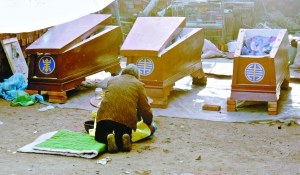 昨日,唐縣倒馬關(guān)鄉(xiāng)夾子村柴振國家中,白色塑料布將前后院罩住,院內(nèi)搭起了簡易的靈棚。7口大棺材和2口小棺材擺在門前,9具尸體停放在前后院,陣陣哀哭聲從靈棚中傳出。