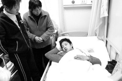 記者在泉州市第一醫(yī)院外科病房看到了年僅15歲的呂榮太,一臉稚氣未脫的他直稱頭暈,并斷斷續(xù)續(xù)地講述了事件的經(jīng)過(guò)。