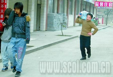 由于兒子楊曉勇在學校經(jīng)常勤工儉學,老師和學校領導都對這個貧困的家庭有所了解,加上向自己的專業(yè)老師極力推薦,父親楊選明到成都的第二天就被安排了一堂著衣模特課。想到自己來這里是為了給兒子掙學費和生活費,老人慢慢忍受著教室里幾十名男女學生的目光和畫筆的雕琢!拔野阉麄兿胂蟪晌以谔沾蓮S做的一只只泡菜壇子,一下就適應了!”那天,楊師傅掙了5元錢,很開心,他說這相當于十斤稻谷的錢了。